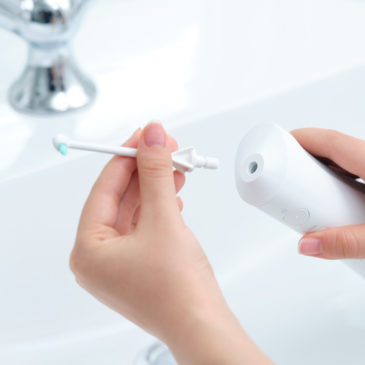 - Đầu dẫn nước bằng cao su mềm tác động nhẹ nhàng trên nướu. - Dễ dàng tháo lắp trên tay cầm - Làm sạch răng kỹ lưỡng. - Làm trôi mảng bám trên tối