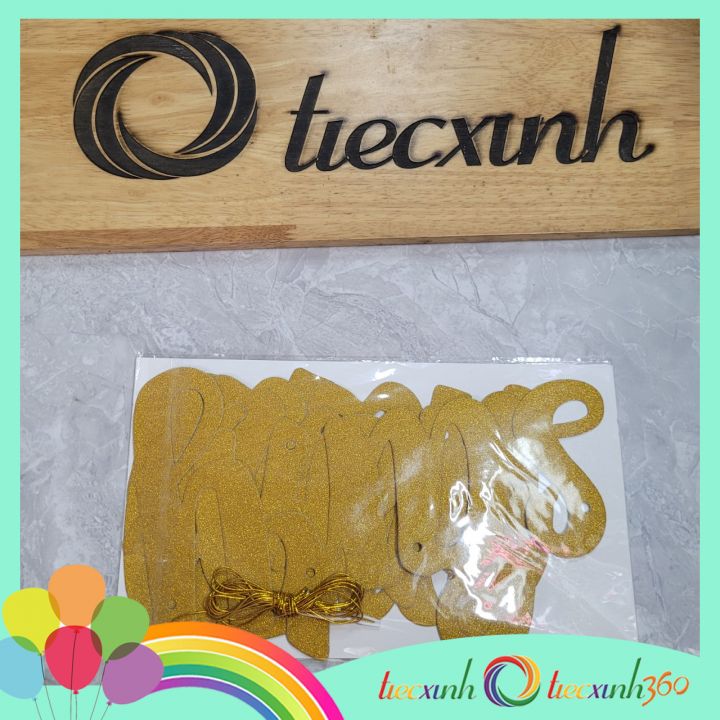 ✨Dây chữ Happy Anniversary nét kiểu kim tuyến vàng