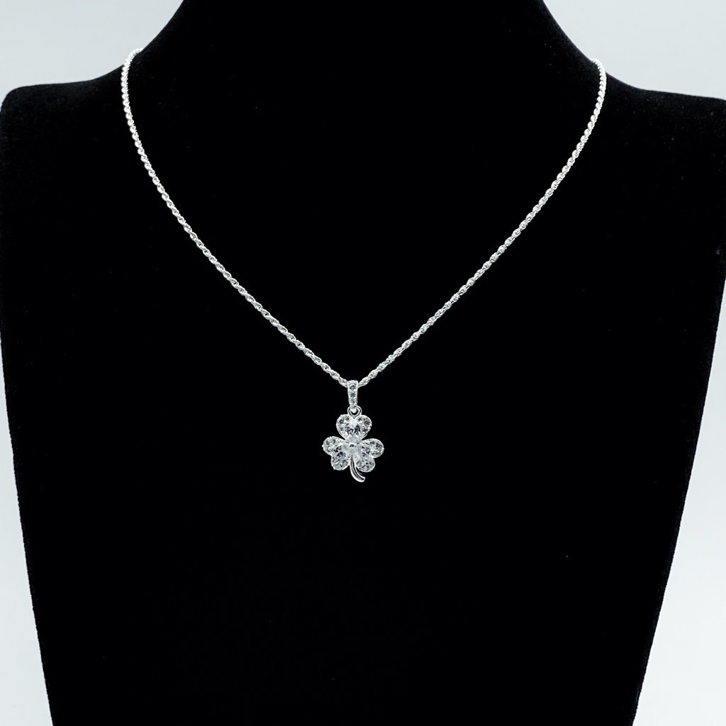 ✨Dây Chuyền Bạc 925 Cỏ 3 Lá Đính Đá Nhân Tạo Cao Cấp Bạc Hiểu Minh DMD531
