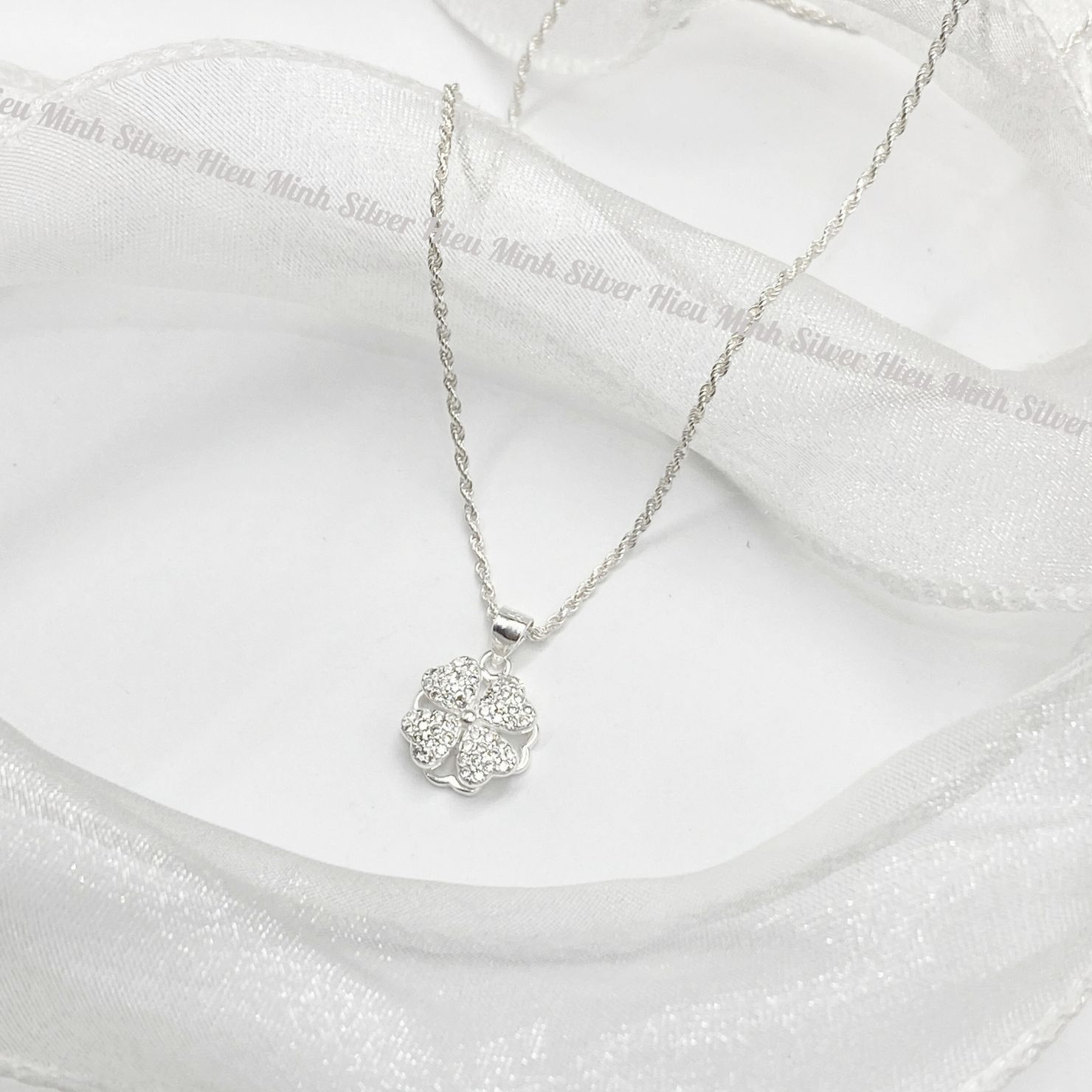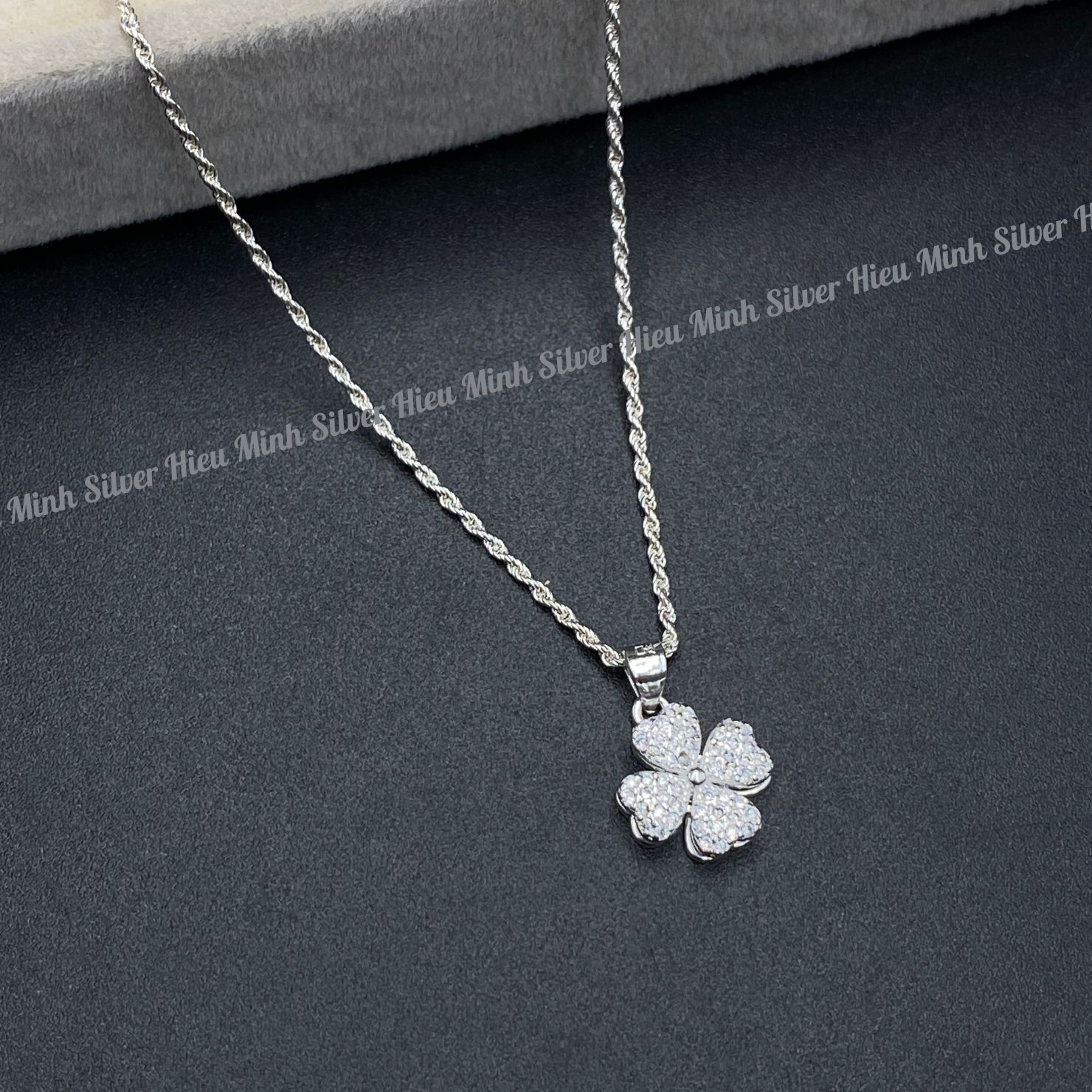 Dây Chuyền Bạc 925 Kiểu Dây Xoắn Kép Cỏ 4 Lá May Mắn Chính Hãng Bạc Hiểu Minh DMD517