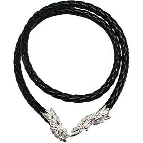 Dây Chuyền Vòng Cổ Dây Da Bọc Bạc Ta Nam Hình Rồng Bạc Hiểu Minh DDN031