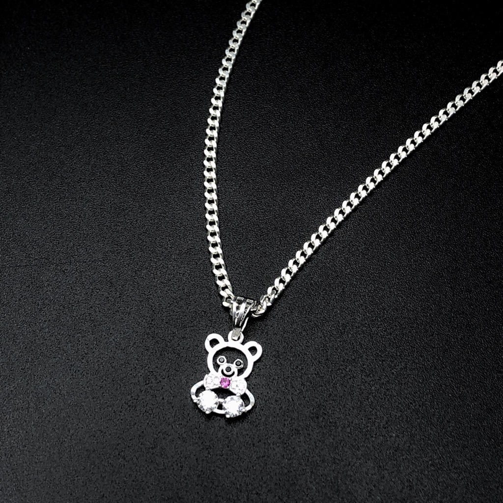 Dây Chuyền Trẻ Em Bạc 925 Hình Mặt Gấu Dễ Thương Chính Hãng Bạc Hiểu Minh DTE063
