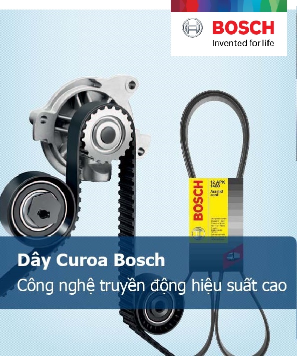 Mô tả sản phẩm Dây cam Bosch :– Lớp vải sợi bọc ngoài với cấu trúc sợi chéo– Các dây chụi lực kéo bền, chắc và kéo căng– Cao su chụi nén do tăng cường