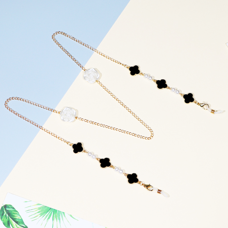 ✨Dây đeo gọng kính ngọc trai mix cỏ 4 lá và charm hoa hồng trắng ấn tượng độc đáo cá tính