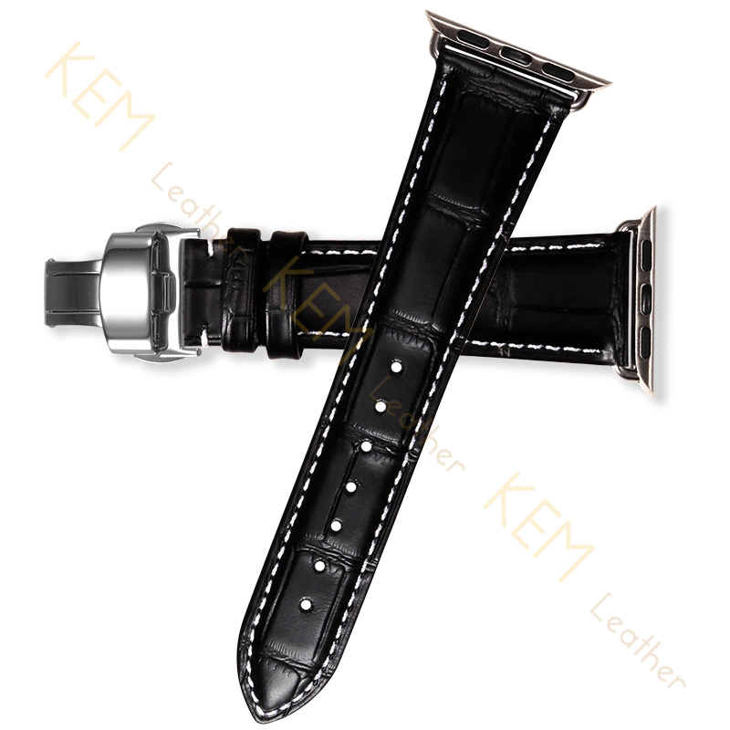 ✨Dây Đồng Hồ Thay Thế Dành Cho Apple Watch 48 Ultra 45/44/42mm - 41/40/38mm, Chất Liệu Da Cá Sấu Cao Cấp Màu Đen May Thủ Công Chỉ Trắng Tương Thích Các Phiên Bản Series 8/7/6/5/4/3/2/1/SE Bảo Hành 12 Tháng