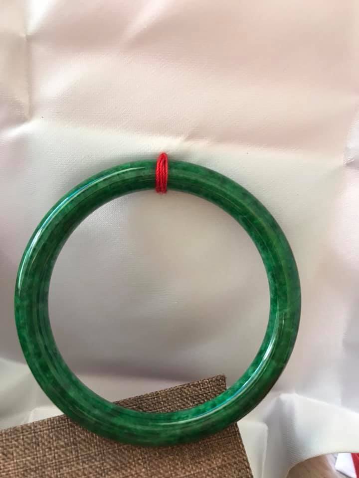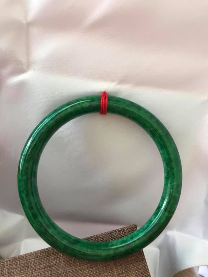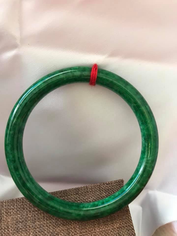 Cặp Vòng Cẩm Thạch tròn 51mm x 6mm Màu xanh ngọc đậm bóng đẹp ạ Nữ mệnh Mộc Hỏa Thủy 50kg - 56kg ạ