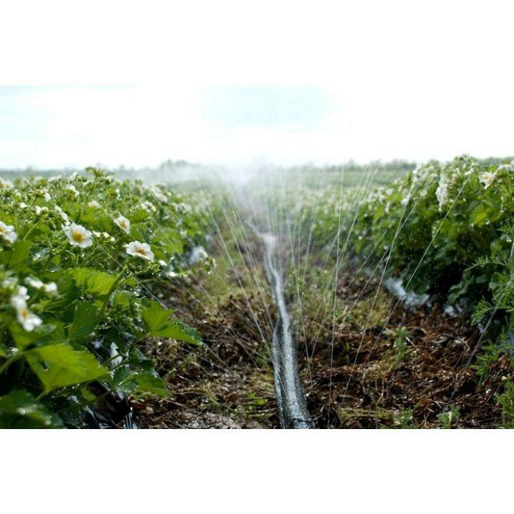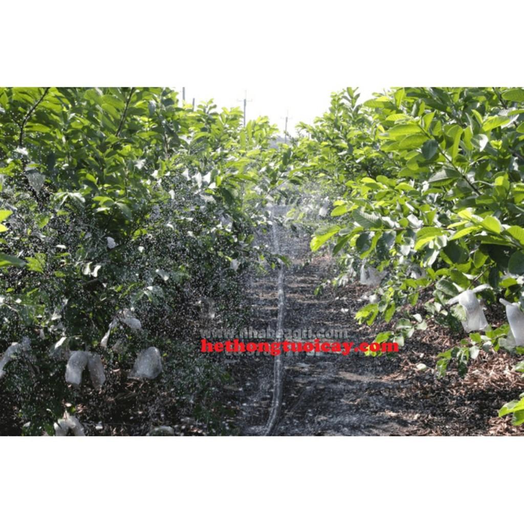 - So với phương pháp tưới bằng béc tưới thì tưới bằng dây tưới phun có ưu điểm hơn đó là thiết bị yêu cầu mức áp suất thấp hơn (có thể hoạt động ở mức áp 0.5-0.8bar), phạm vi tưới chạy dài theo chiều dài ống với độ phủ từ 4m – 5m, tia phun đạt độ cao 1.7m.