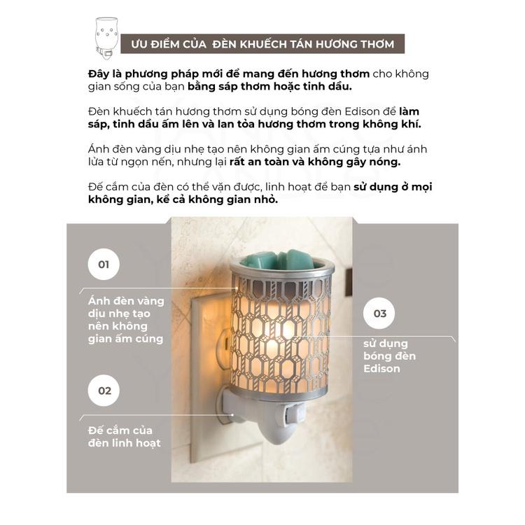- Đèn khuếch tán hương thơm sử dụng bóng đèn Edison để làm sáp ấm lên và tan chảy trong đĩa, từ đó lan tỏa hương thơm trong không khí.