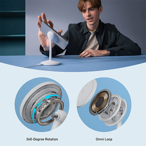 • Xoay 360° với bề mặt sạc có thể điều chỉnh