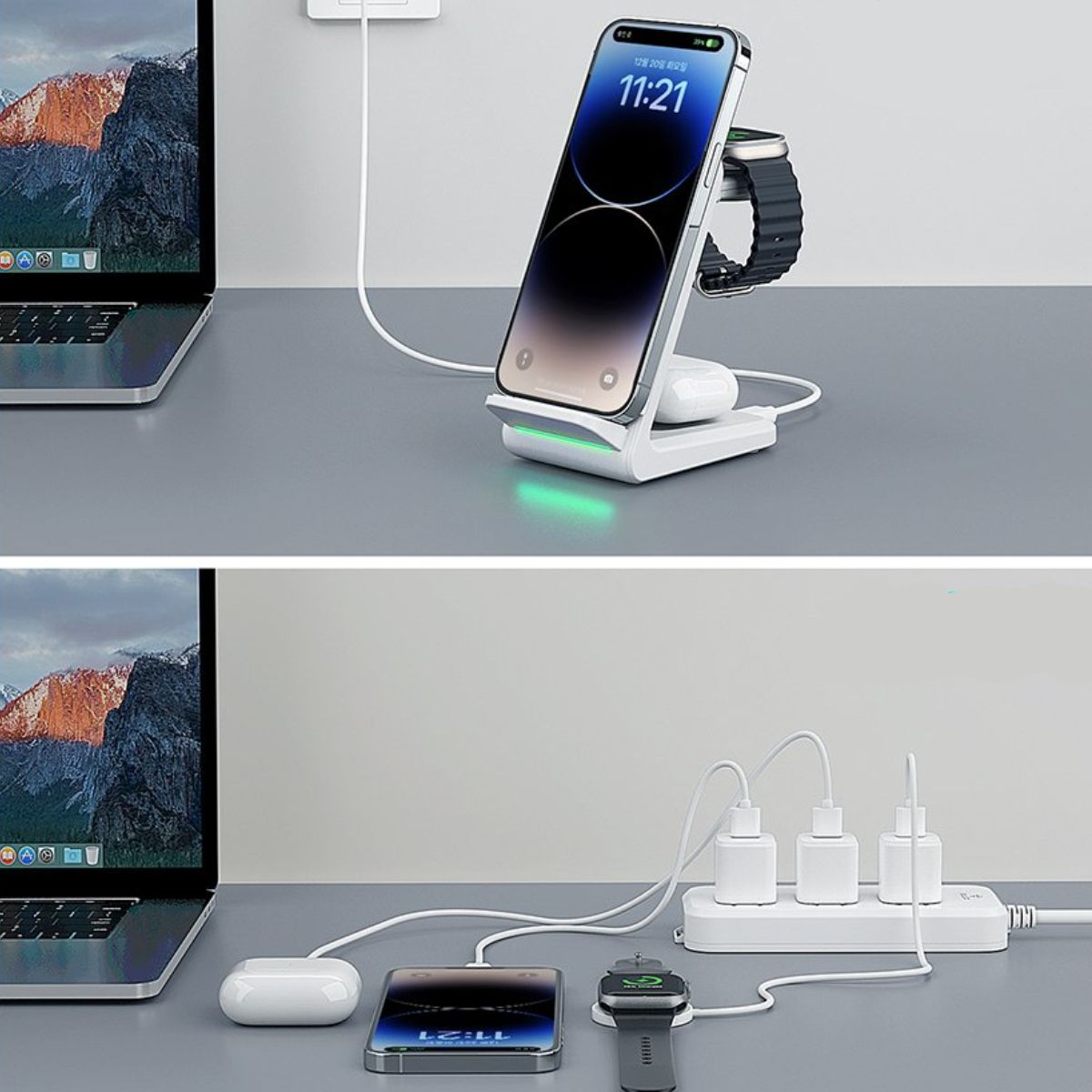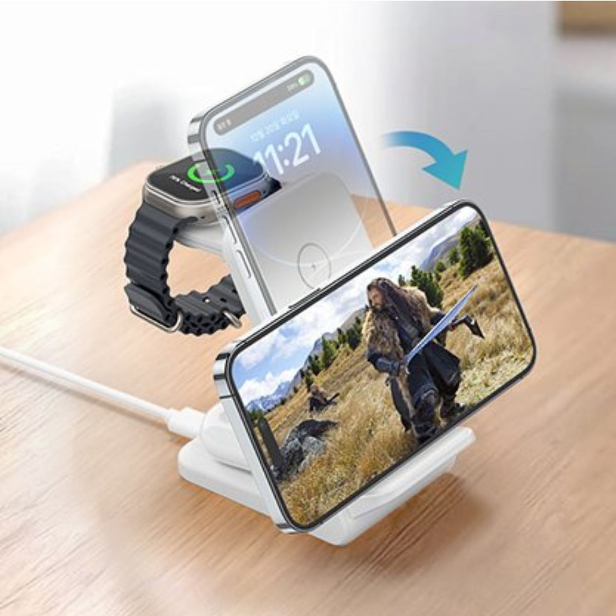 Lực hút nam châm tăng 20% so với các sản phẩm thông thường, giữ chặt thiết bị tương thích ngay cả khi di chuyển. Bạn có thể sạc ba thiết bị cùng lúc với một