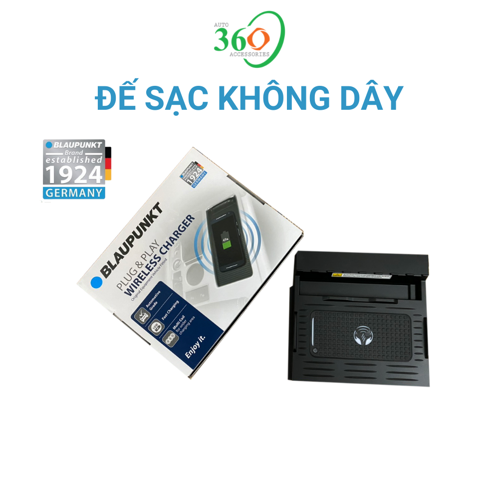 Mô tả - Đế sạc không dây, dock sạc không dây do hãng Blaupunkt của Đức sản xuất. Hãng này được thành lập từ năm 1924. - Đế sạc không dây dành riêng cho xe
