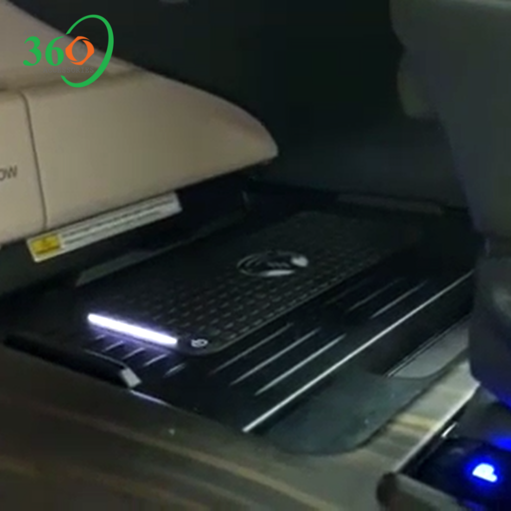 - Đế sạc là loại sạc nhanh không dây, được thiết đặt trên hộp để đồ lặt vặt chỗ ghế lái.