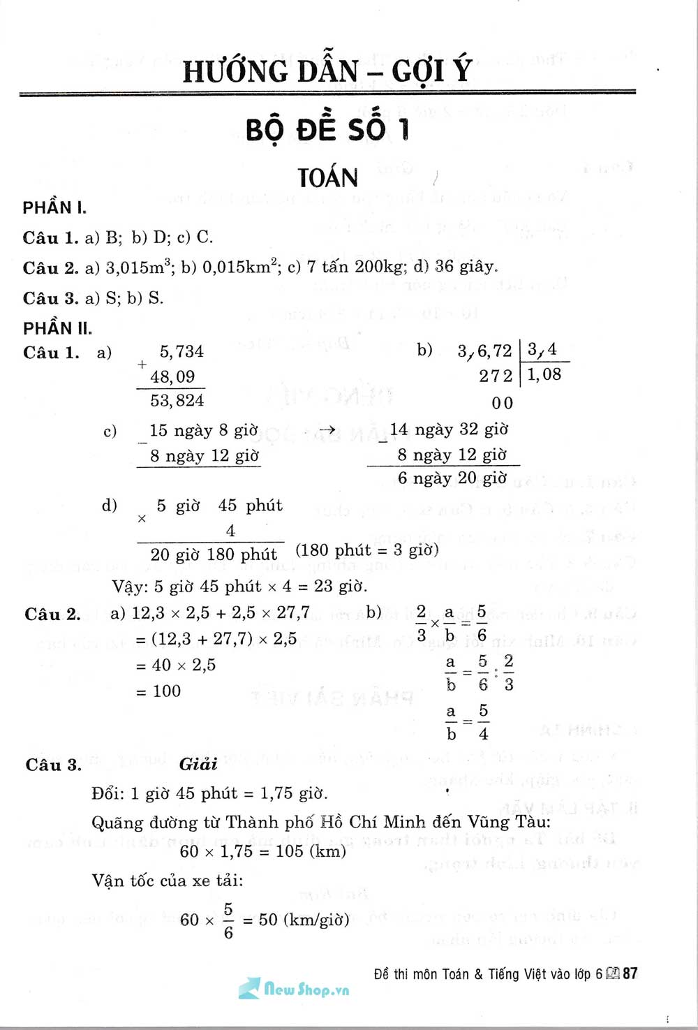 ✨Đề Thi Môn Toán Và Tiếng Việt Vào Lớp 6 - HA