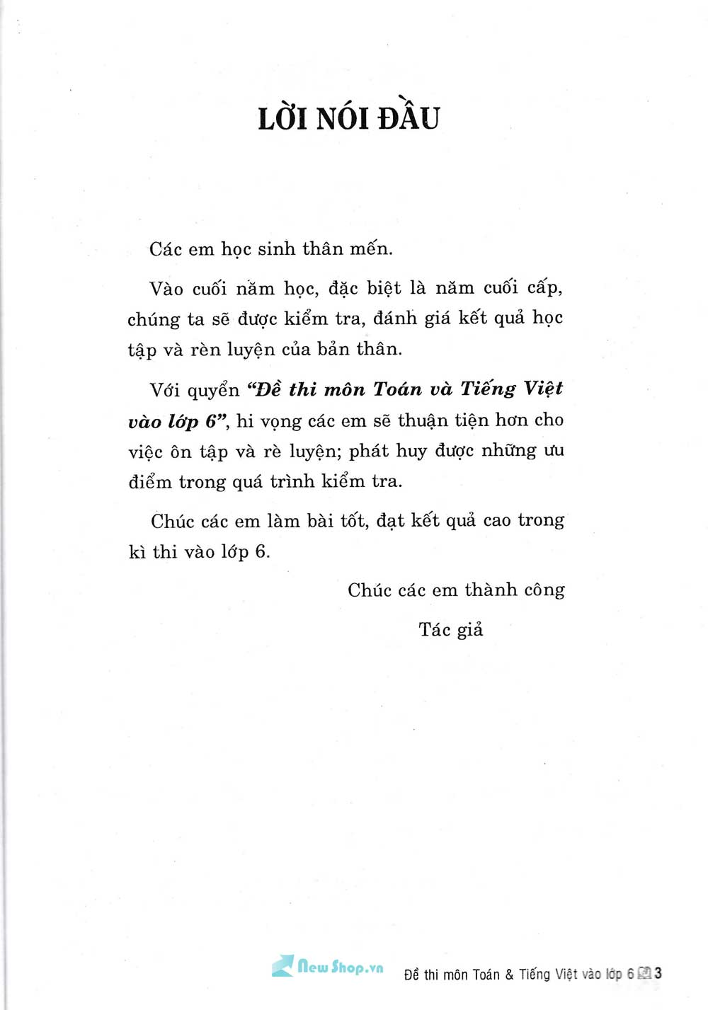 Mua tại TiktokĐề Thi Môn Toán Và Tiếng Việt Vào Lớp 6 Vào cuối năm học, đặc biệt là năm cuối cấp, chúng ta sẽ được kiểm tra, đánh giá kết quả học tập và rèn luyện bản thân. Cuốn sách Đề Thi Môn Toán Và Tiếng Việt Vào Lớp 6 gồm 20 đề, mỗi đề gồm: Môn Toán: Phần I: Trắc nghiệm khách quan Phần II: Tự luận Môn Tiếng Việt: Phần 1: Phần bài đọc. Phần 2: Phần bài viết. Các em có thể làm bài ngay trong tập sách này rất thuận tiện. Cuốn sách tin rằng với những đề kiểm tra được soạn trong tập sách sẽ giúp các em nắm vững kiến thức đã học, nhớ rõ nội dung trọng tâm của chương trình và thực hiện tốt bài thi tuyển vào lớp 6 của môn Toán và Tiếng Việt.