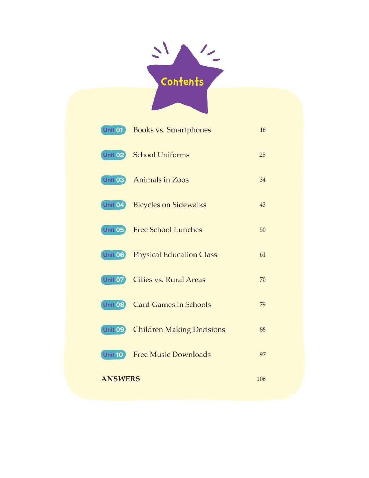Mỗi cuốn sách bao gồm 10 bài học tương đương với 10 chủ đề khác nhau, qua từng cuốn các chủ đề cũng có sự thay đổi theo hướng nâng cao hơn cho phù hợp với sự tiến bộ của học sinh.