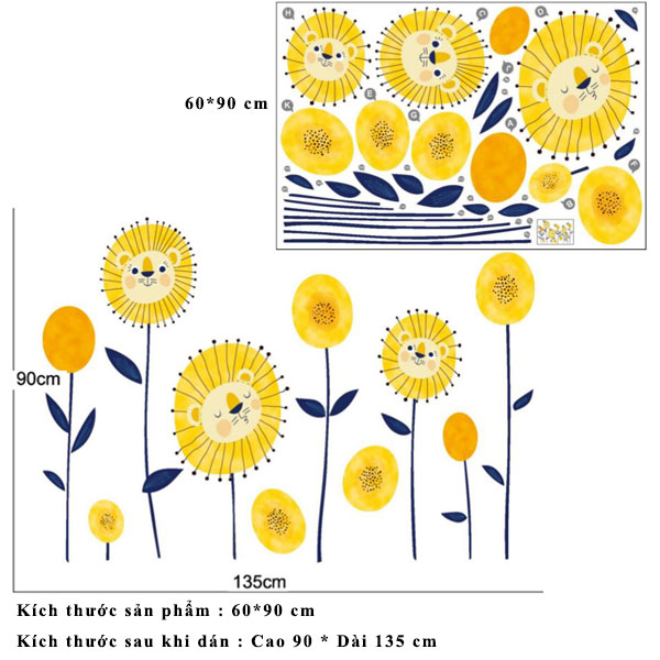 Kích thước :Decal dán tường hoa mặt trời hoạt hình XH-9292