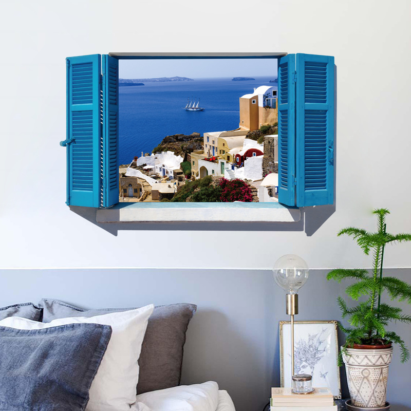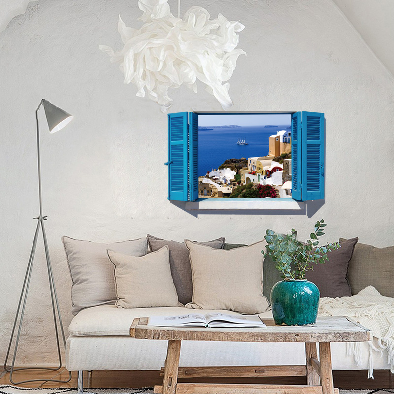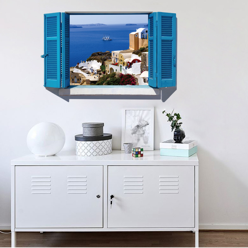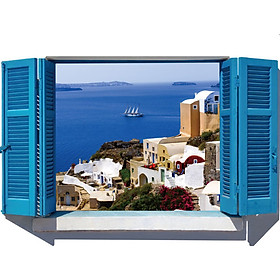 Kích thước :Decal dán tường nguyên miếng cửa sổ màu xanh Địa Trung Hải SK9059A-Decal nguyên miếng