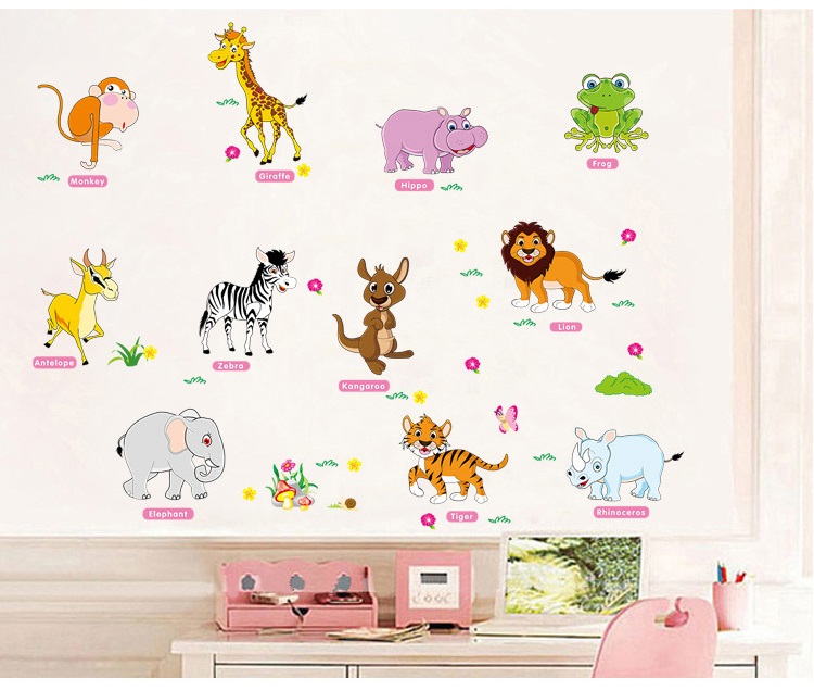 DECAL DÁN TƯỜNG cho bé Vườn Thú Tiếng Anh 1 - GIẤY và TRANH dán tường con vật cho bé học .