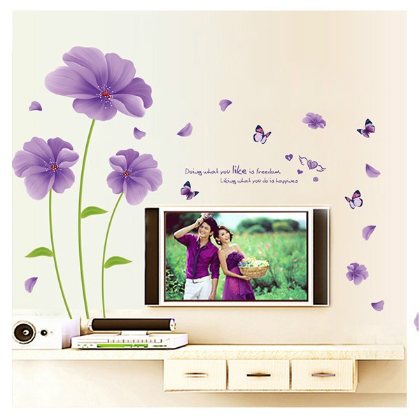 Decal dán tường Hoa tím to có màu sắc tươi sáng, hình ảnh 3D, tạo cảm giác mát mẻ, khác biệt, tràn đầy không khí thiên nhiên, trong lành ngay khi bước vào nhà bạn !Decal với chất liệu PVC vinyl cao cấp thân thiện với môi trường, không thấm nước. Bạn có thể lau chùi sau khi dán. Decal có thể dán trên nhiều bề mặt khác nhau như : gạch men, gỗ, kính, nhựa, xe, tủ lạnh và nhiều bề mặt phẳng mịn khác nhau.Kích thước sau khi dán : Cao 100 x ngang 200 cm
