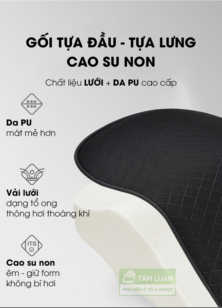Gối tựa đầu cao su non - Gối tựa đầu xe hơi cao cấp, phù hợp mọi loại xe - Gối đầu được làm bằng cao su non có độ đàn hồi và êm ái