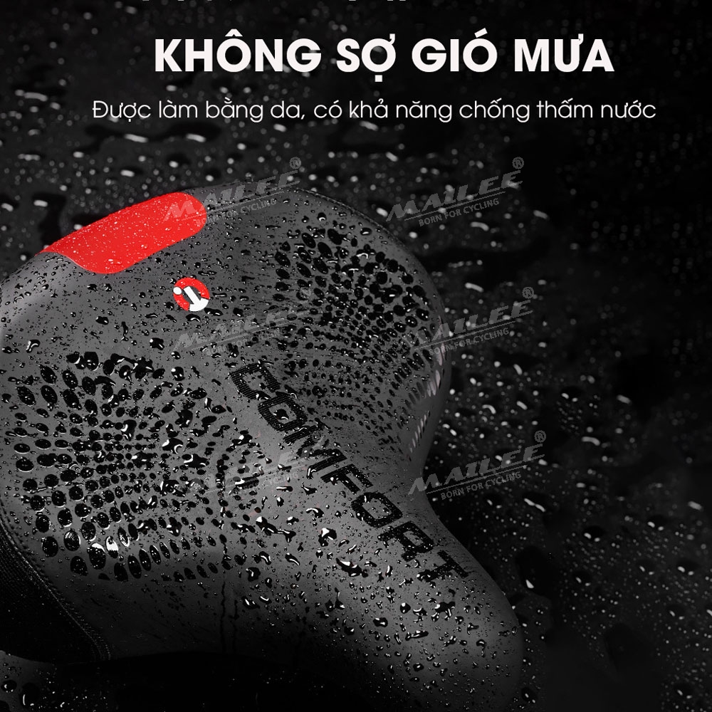- Không thấm nước: Lớp ngoài yên xe đạp thoải mái được làm bằng da PU chống thấm nước, bảo vệ lớp xốp bên trong khỏi độ ẩm và duy trì độ đàn hồi.