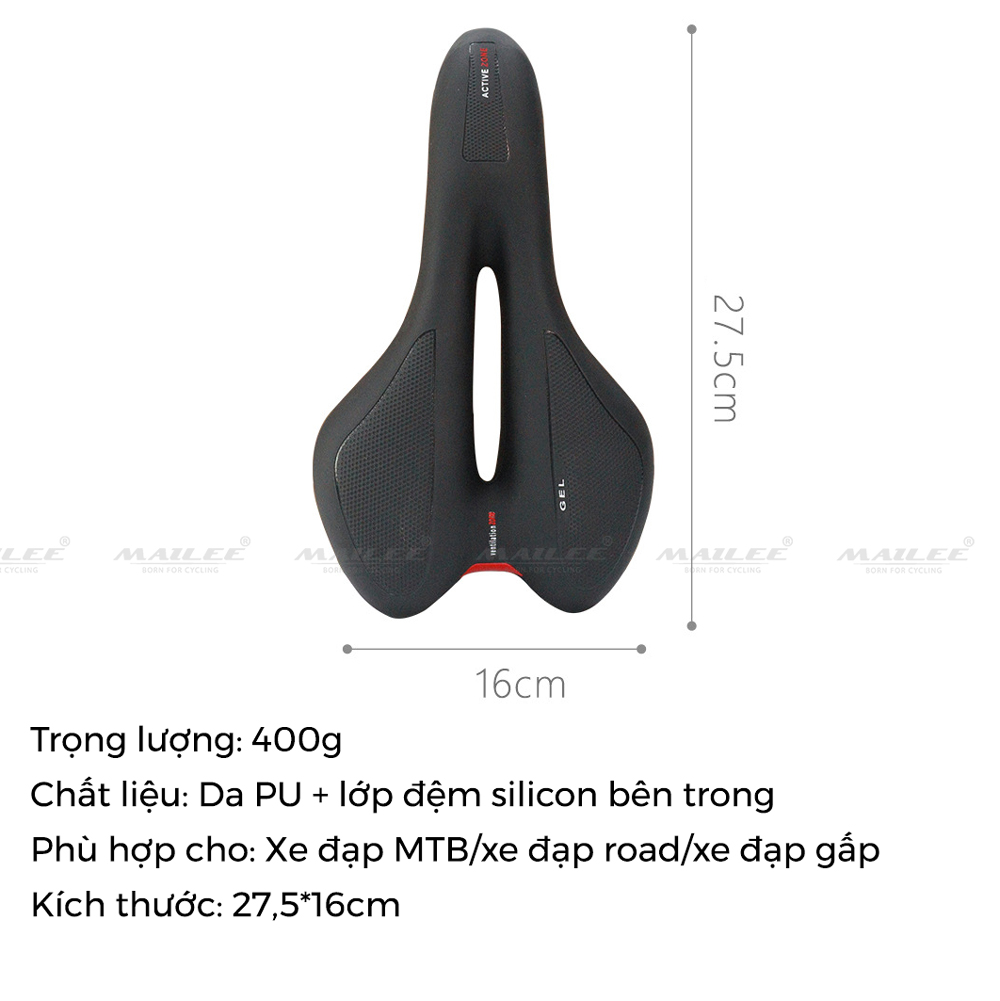 Đệm Yên Xe Đạp GEL ACTIV-66 kích thước 27.5x16cm Chất Liệu Da PU và Đệm Silicon Mềm Mại, Thoáng Khí Cho Xe Đạp Road, Xe đạp Touring - Mai Lee Yên xe đạp rỗng thoải