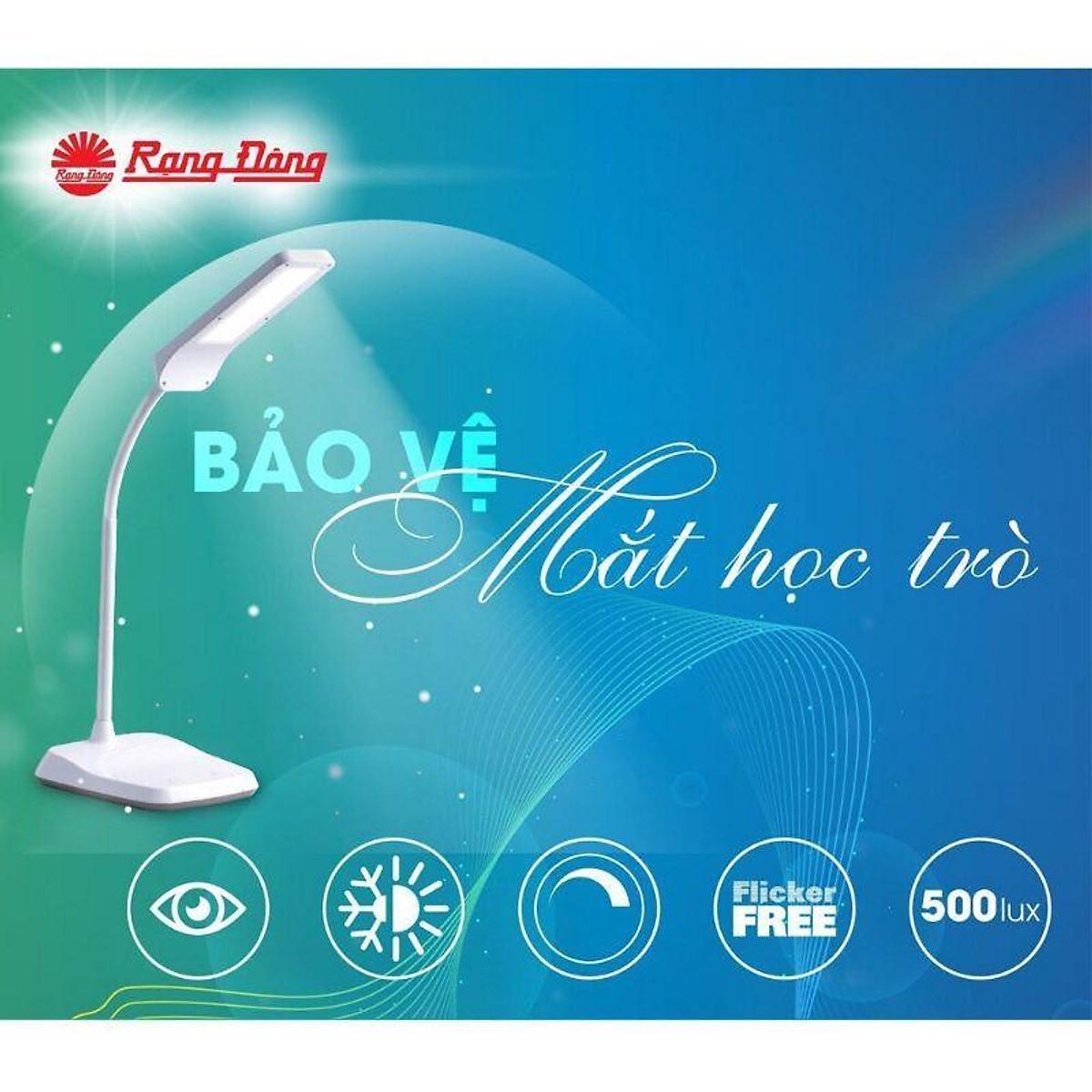 Công suất: 5W Điện áp: 220V/50Hz Màu ánh sáng: Trắng/Vàng Độ rọi: 700 lux - Đèn bàn LED Rạng Đông bảo vệ thị lực - Cần đèn linh hoạt điều chỉnh độ cao và góc