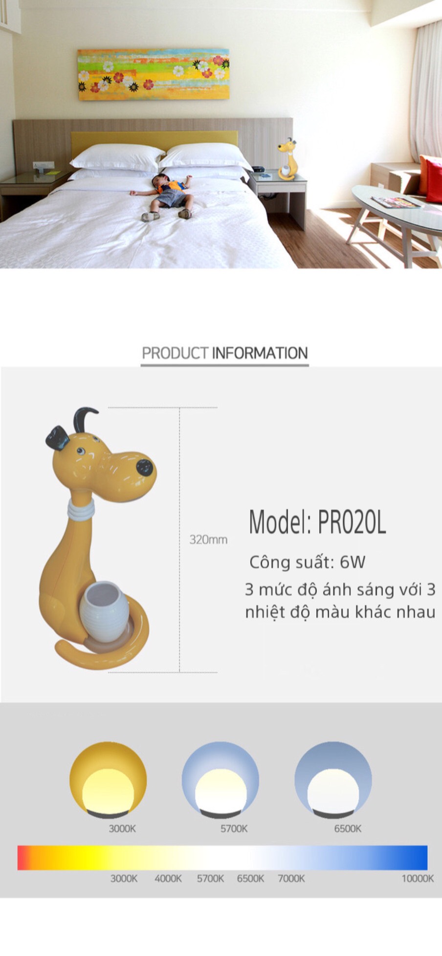 - Đèn Bàn Chống Cận Thị PROTEX PR-020L LED: 6W, Chip LED công nghệ CHLB Đức cho đèn chất lượng ánh sáng tự nhiên. - Công tắc: 2 công tắc Cảm ứng cho đèn ngủ