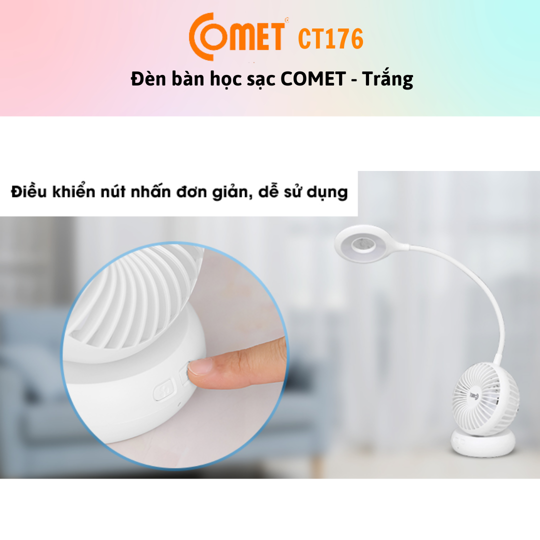 Mua tại Tiktok- Đèn Bàn + Đèn Sạc 2 Trong 1 LED COMET CT176 rất phù hợp để dành cho bé yêu nhà bạn, vừa học bài, vừa có quạt mát, mà không còn lệ thuộc vào việc nhà mất điện