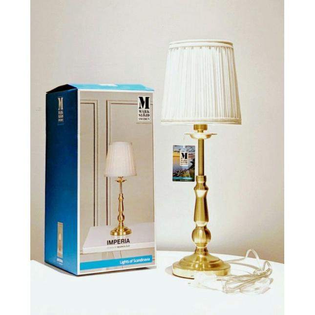 Mua tại TiktokĐẶC TÍNH ĐÈN ĐỂ BÀN CAO CẤP THƯƠNG HIỆU MARKSLOJD TRANG TRÍ PHÒNG NGỦ, PHÒNG KHÁCH: Thương hiệu đèn chính hãng: MARKSLOJD – Thụy Điển. Chất liệu đèn: Khung thép, chóa vải mầu trắng. Kích thước đèn: Đường kính chóa trên 14cm. Đường kính chóa dưới 18cm. Chiều cao 49cm. Công suất đèn: Lắp 1 bóng rời đui E14. Công suất tối đa 40w. Mầu sắc đèn: Thân đèn bằng thép mầu vàng đồng. Chóa mầu trắng. Điện áp đầu vào: AC 220 – 230V. Cấp độ bảo vệ mắt: IP20. Dây phích cắm dài 200cm, kèm công tắc bấm. Hộp sản phẩm chưa bao gồm bóng. SẢN PHẨM CHÍNH HÃNG CỦA HÃNG ĐÈN DANH TIẾNG MARKSLOJD TẠI THỤY ĐIỂN , CÓ NHÀ MÁY SẢN XUẤT TẠI TRUNG QUỐC. SẢN XUẤT THEO QUY TRÌNH VÀ TIÊU CHUẨN NGHIÊM NGẶT CỦA MARKSLOJD THỤY ĐIỂN