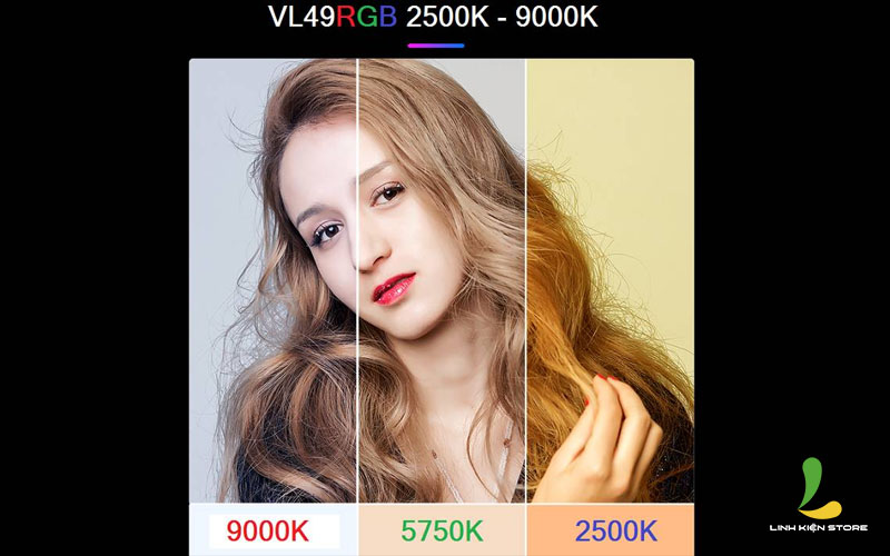 - Ánh sáng tự nhiên Phụ kiện hỗ trợ cung cấp nhiệt độ màu 2500K- 9000K, công suất 5.5W, CRI > 95. Với 49 bóng đèn LED siêu nhỏ chất lượng tốt cho ánh sáng có độ sáng cao và màu sắc trung thực. Đèn ULANZI VL49 RGB còn sử dụng filter dày nhẹ cho ánh sáng đều và mạnh, không gây chói và nguồn sáng dịu hơn. Nhiệt độ màu 2500K- 9000K