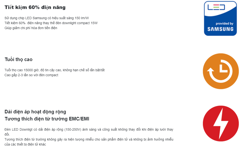 - Tiết kiệm đến 90% điện năng