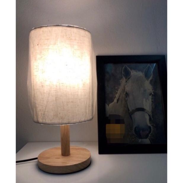 Chất liệu : Thân đèn gỗ, chao vải kẻ chỉ Bóng đèn : Đui E27 Công suất : 3W Màu ánh sáng : Ánh sáng vàng Đèn bàn để trang trí bàn nhỏ Size :