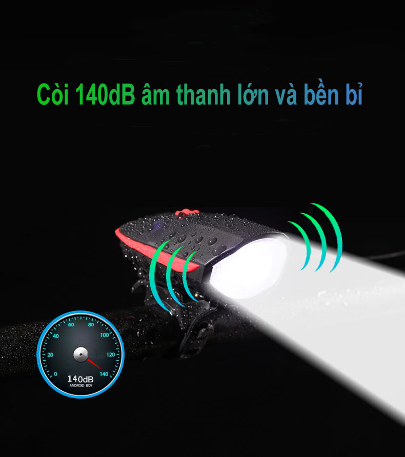 Đèn Xe Đạp Có Còi Chống Nước, Sạc USB