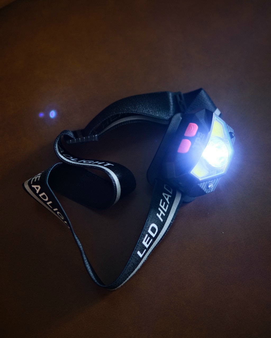 Mô tả sản phẩm Mới XPE+COB cảm ứng ánh sáng mạnh đầu đèn USB sạc ngoài trời ánh sáng ban đêm đi xe ánh sáng đầu - Có thể sạc qua usb - Đèn đội