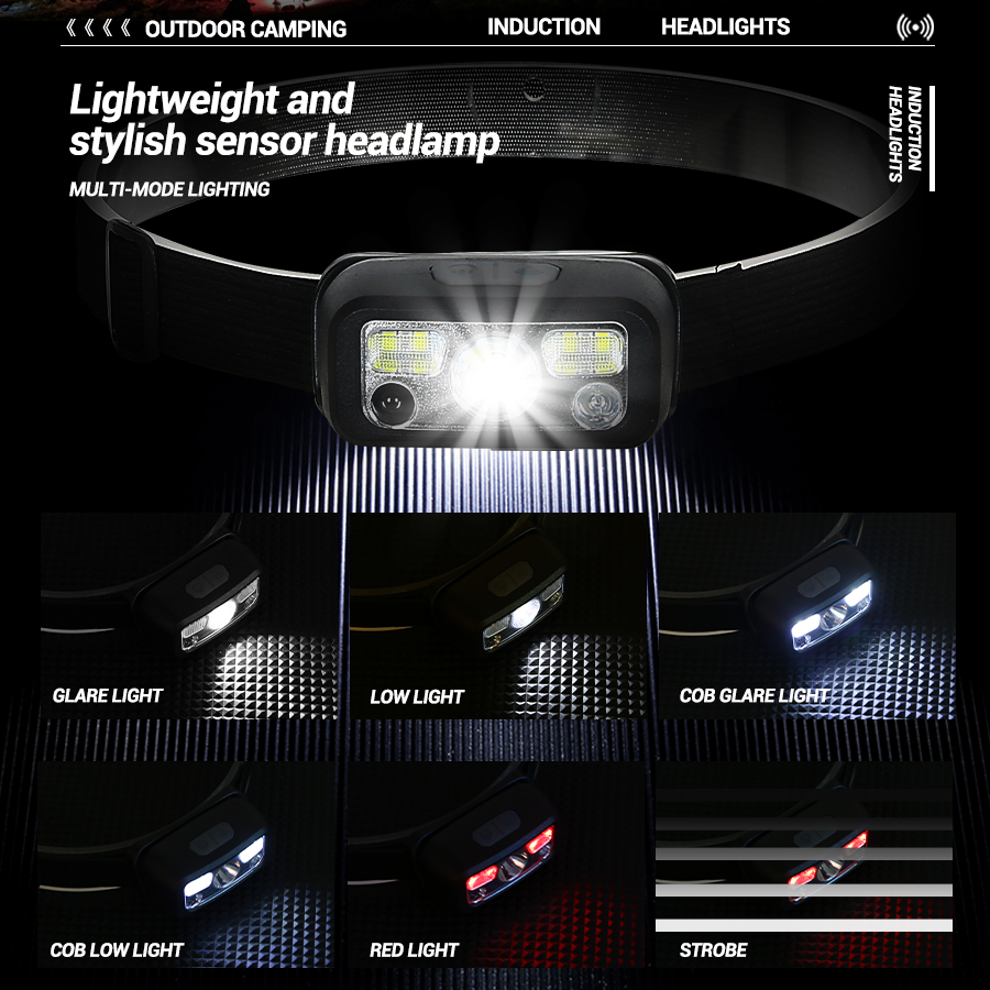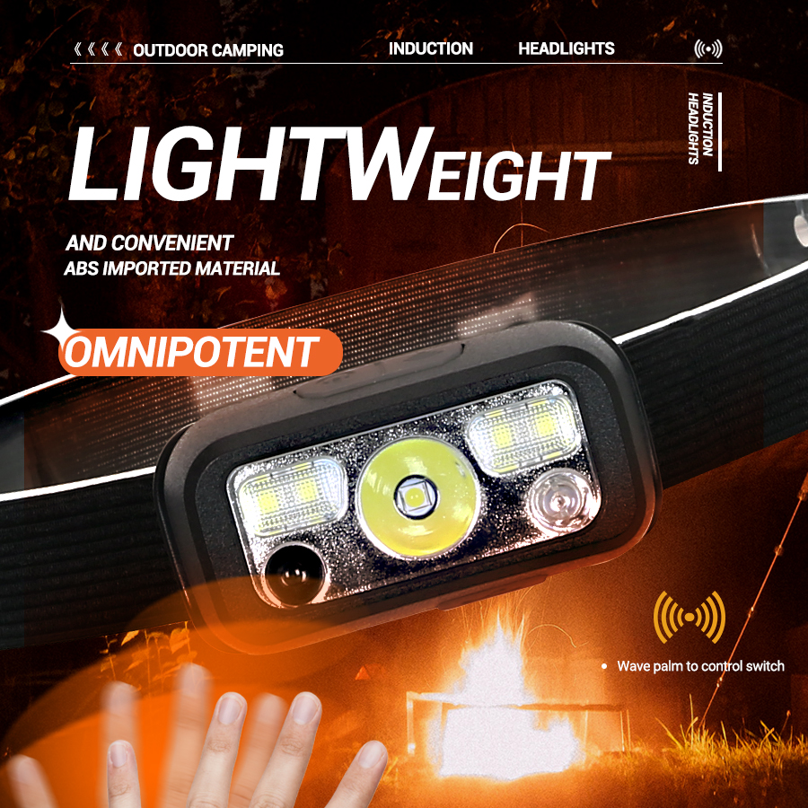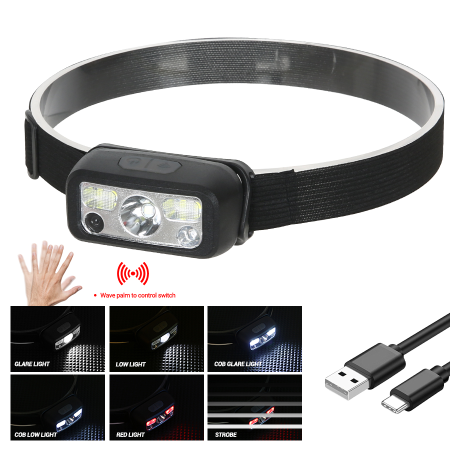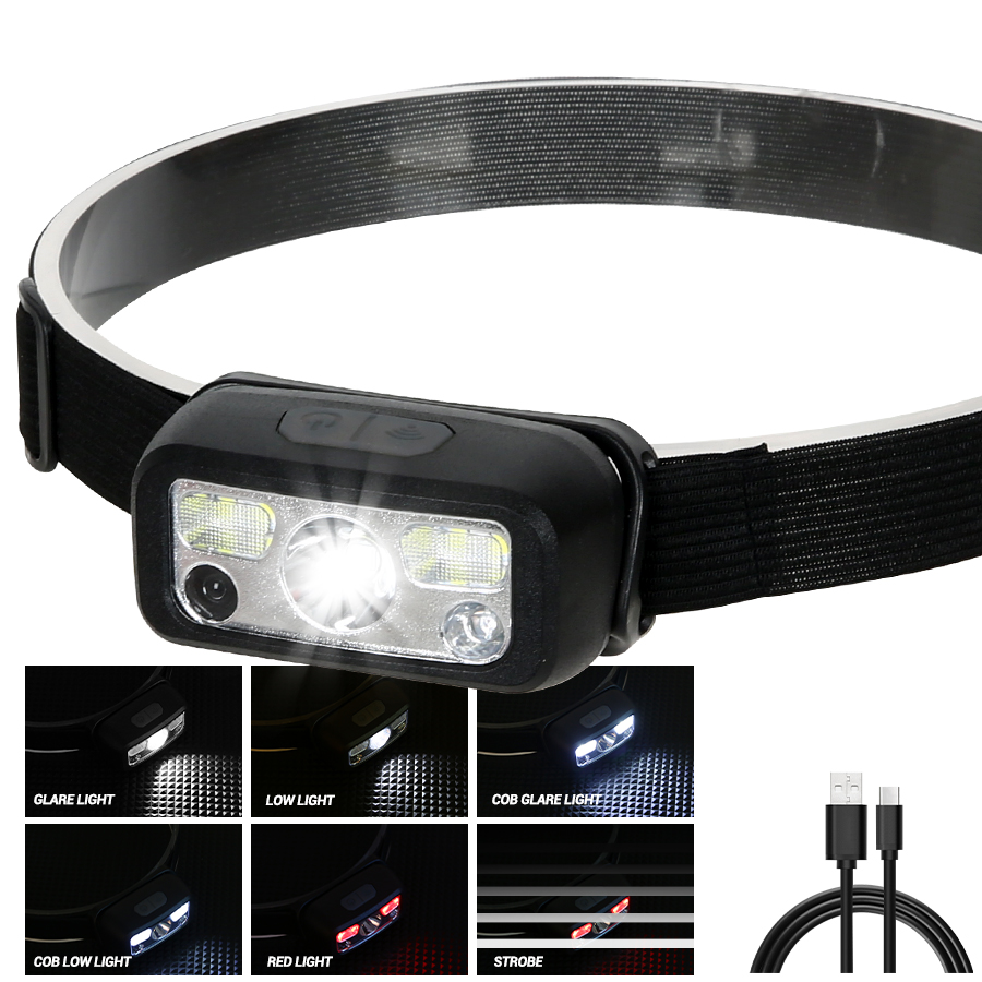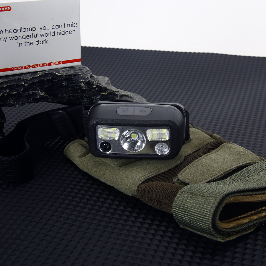 Mô tả sản phẩm Mới XPE+COB cảm ứng ánh sáng mạnh đầu đèn USB sạc ngoài trời ánh sáng ban đêm đi xe ánh sáng đầu