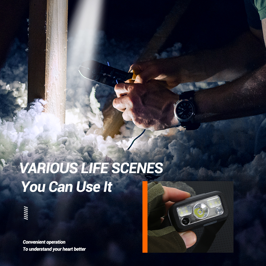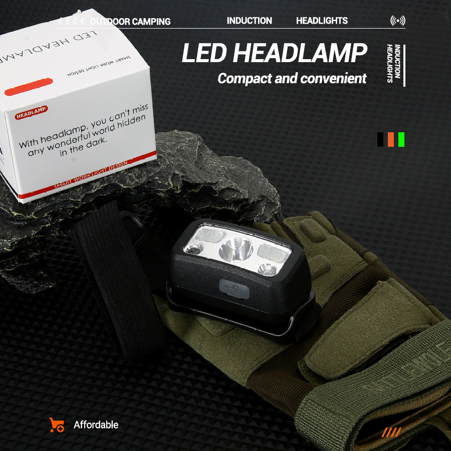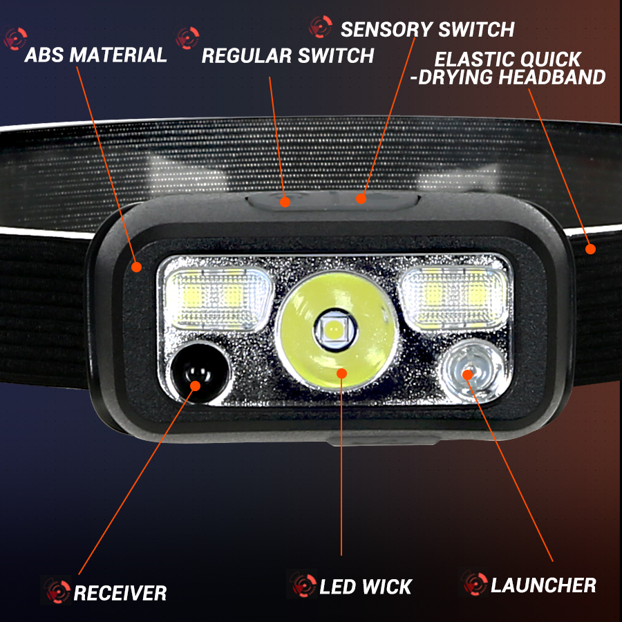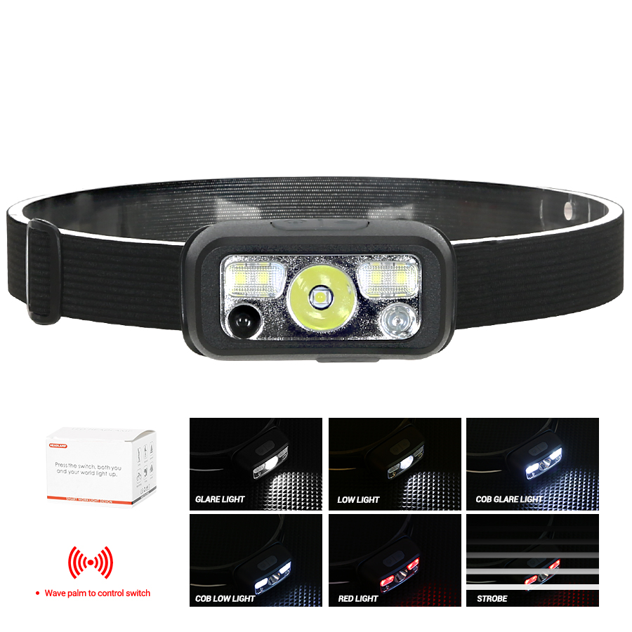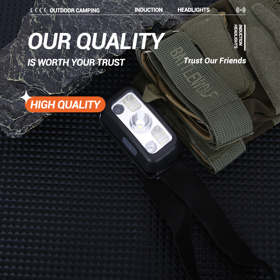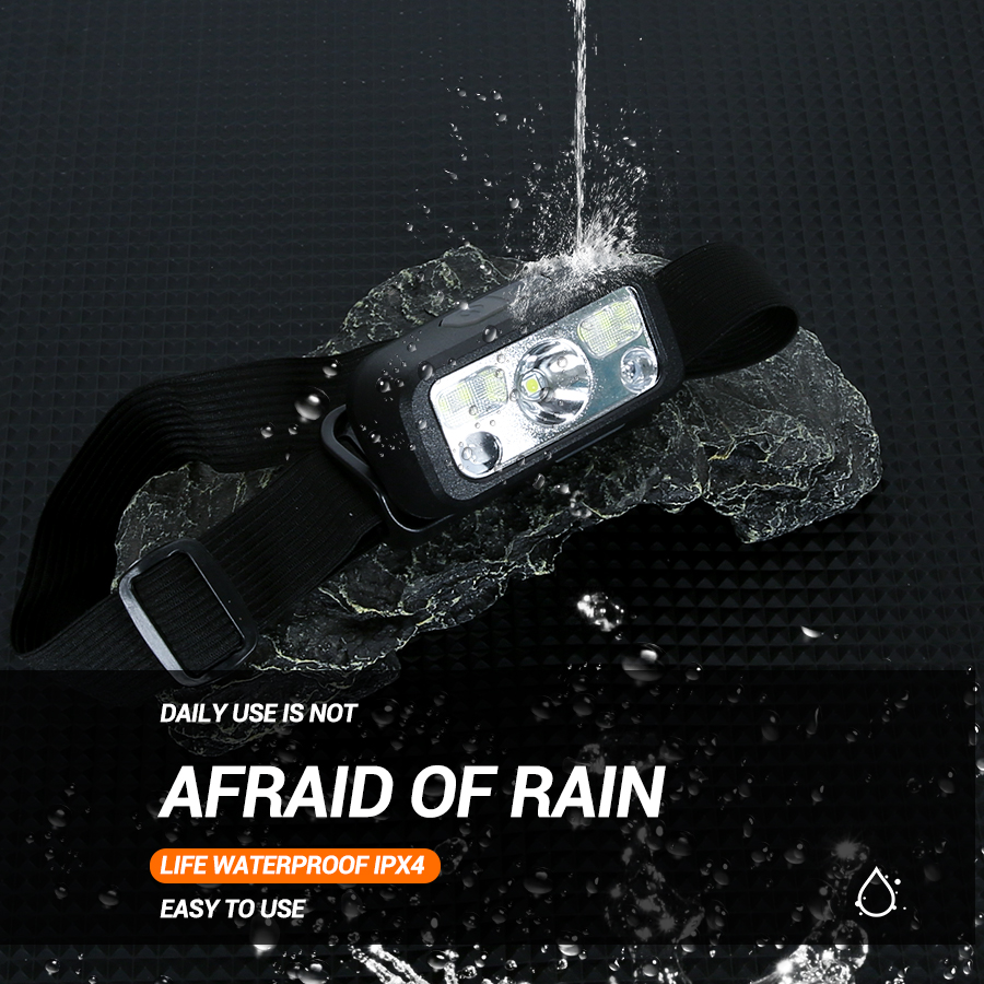 Mô tả sản phẩm Mới XPE+COB cảm ứng ánh sáng mạnh đầu đèn USB sạc ngoài trời ánh sáng ban đêm đi xe ánh sáng đầu