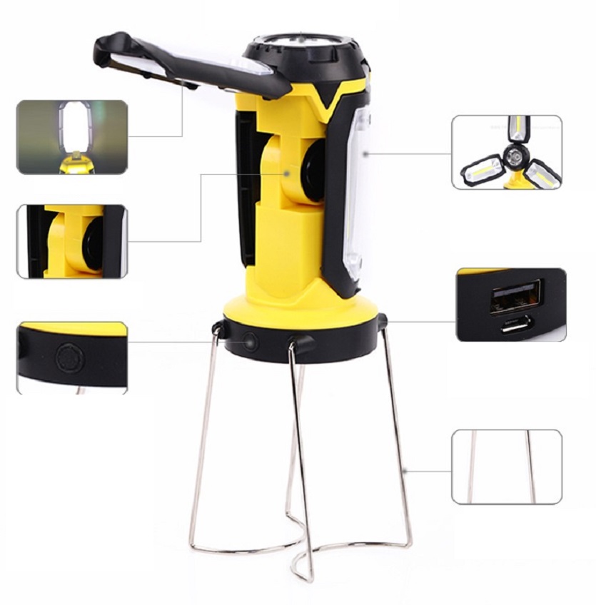 Thông số sản phẩm Model: Đèn làm việc Nguồn sáng: LED + COB Pin: tích hợp pin lithium Chất liệu vỏ: ABS 4 Vị trí bánh răng: COB(đánh dấu-trung bình) đèn LED sáng COB (đèn