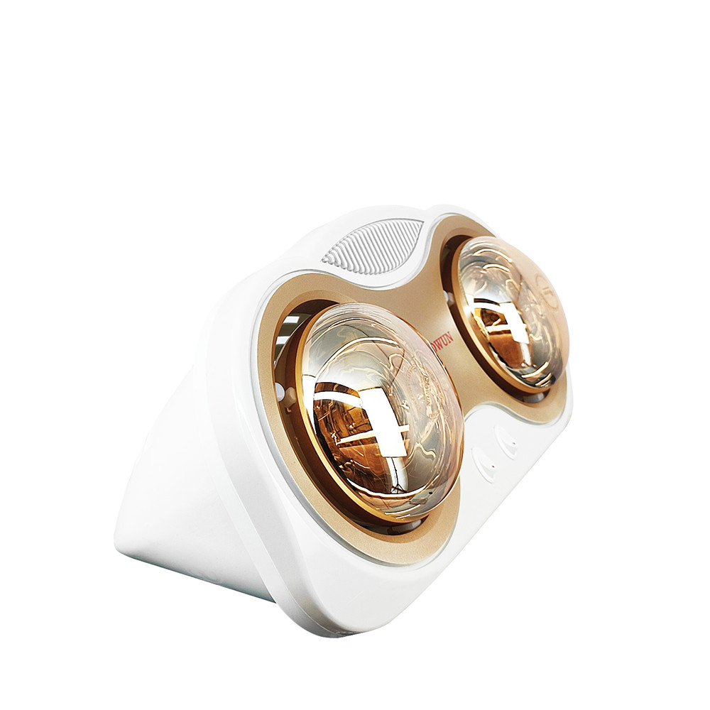 Đèn sưởi nhà tắm 2 bóng cao cấp Với việc sử dụng công nghệ mới, bóng đèn được tráng một lớp hợp kim màu vàng sẽ làm giảm độ chói của ánh sáng mà vẫn không làm giảm đi nhiệt độ do bóng tỏa ra. Đèn sưởi nhà tắm 2 bóng có thể sử dụng ở phòng tắm, phòng ngủ, phòng khách. THÔNG TIN SẢN PHẨM:    Điện áp: 220V; 50Hz  Model: K2B-G  Công suất: 550W đèn 2 bóng  Bảng điều khiển: 2 công tắc điều khiển 2 bóng  Bóng đèn: 2 bóng tráng kim cương nhân tạo có tác dụng tăng độ ấm và giảm chói mắt khi sử dụng  Tuổi thọ Bóng đèn: > 10.000 h (tương đương 6 năm)  Dây điện: dài 2m, đầu cắm tròn, 2 chân theo tiêu chuẩn châu Âu  Phụ kiện đi kèm: móc treo 2 vít nở. Diện tích phòng: từ 2 - 4 m2  TÍNH NĂNG NỔI BẬT ❶ Thiết kế thời trang, bề mặt bóng tráng kim cương nhân tạo, logo nổi và sắc nét, bóng sưởi bớt chói mắt và có độ ấm cao hơn những bóng thông thường. ❷ Kích thước nhỏ gọn tiết kiệm diện tích cho phòng tắm nhà bạn ❸ Sử dụng bóng hồng ngoại, sưởi ấm nhanh , không đốt cháy oxy ❹ Thiết kế sang trọng phù hợp với mọi phòng tắm