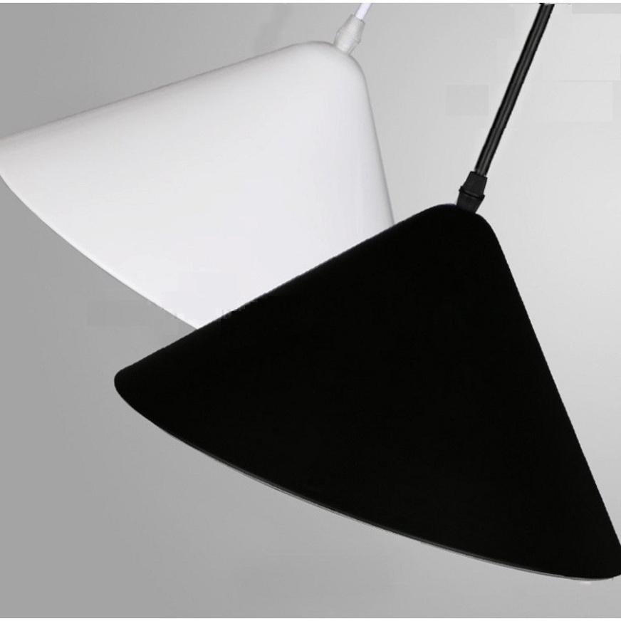Bộ 3 đèn thả khối tam giác trang trí cao cấp kèm bóng LED và đế ốp trần Đường kính đèn 25 cm. Làm bằng khung sắt sơn tĩnh điện. Phù hợp cho trang trí quán cafe,