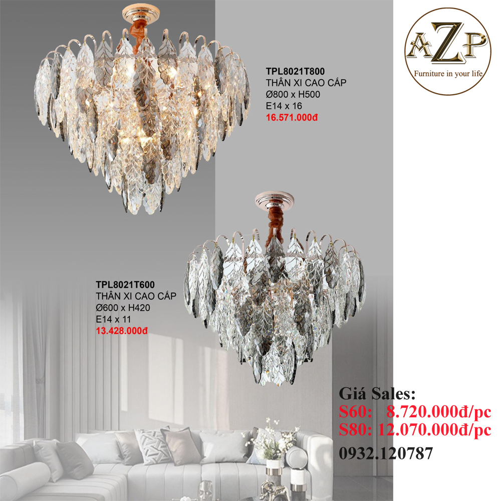 ĐÈN THẢ TRẦN PHA LÊ / ĐÈN THÔNG TẦNG TRANG TRÍ PHÒNG KHÁCH / PHÒNG NGỦ / CẦU THANG / KHÔNG GIAN SANG TRỌNG AZP-8021 phong cách đương đại, hàng nhập khẩu AZP