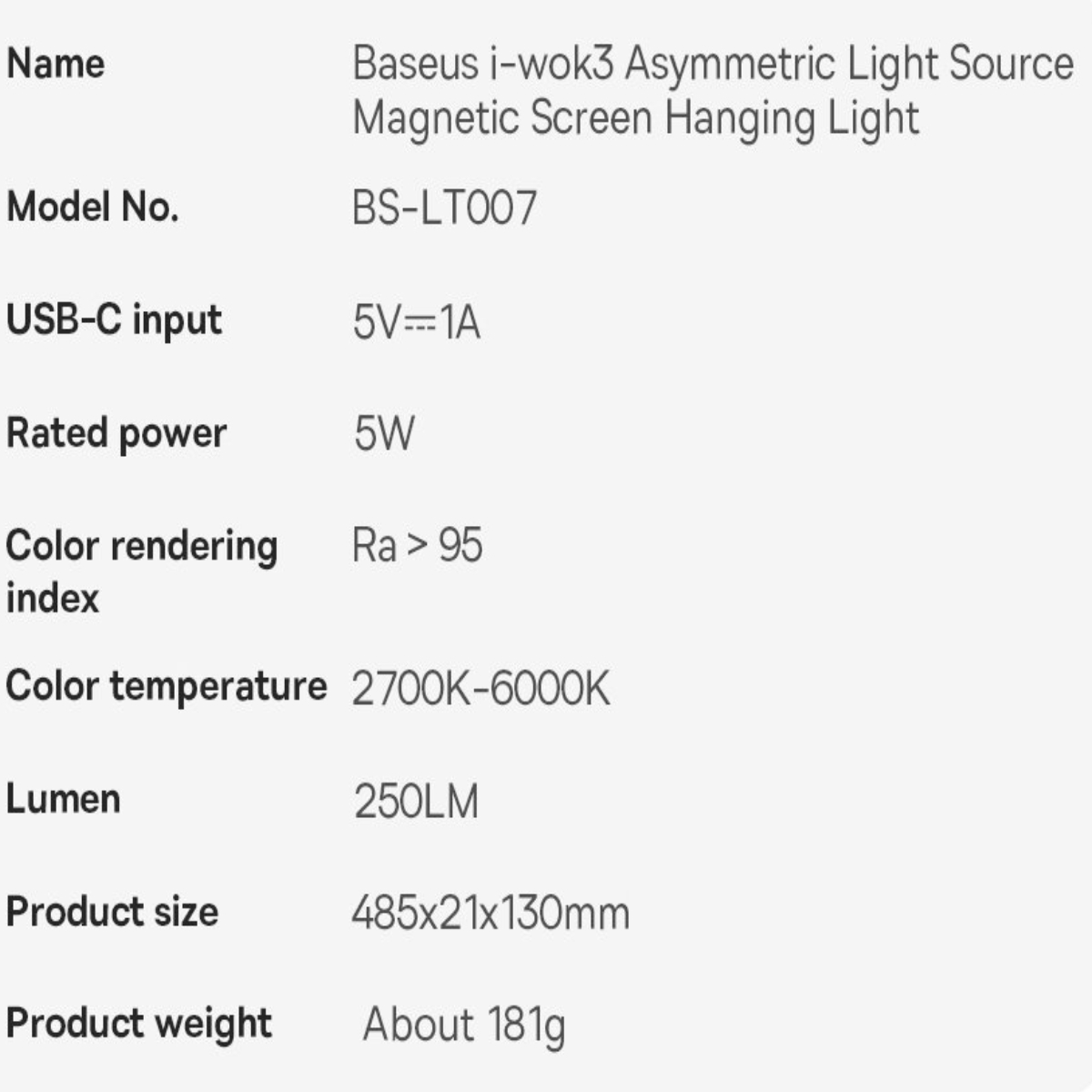 Baseus i wok 3 Series Asymmetric Light Source Magnetic Screen Hanging Light