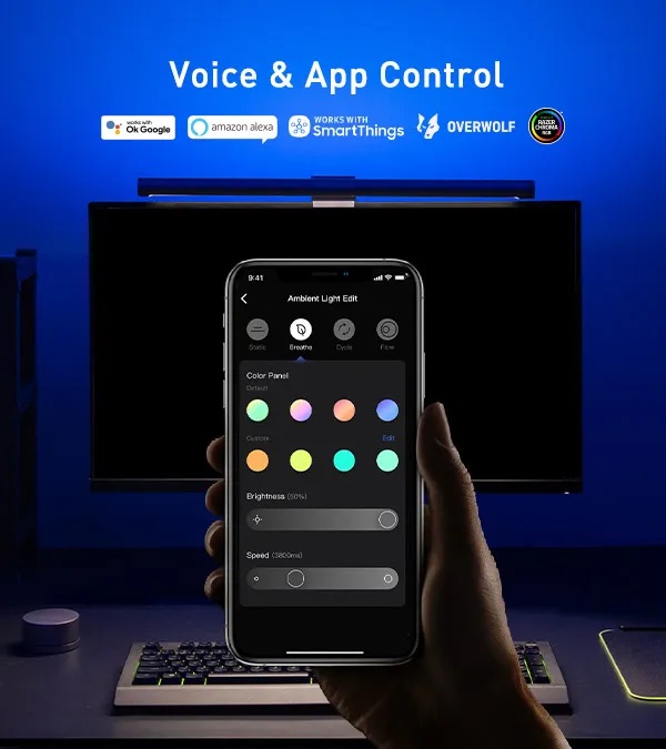 Phiên bản đèn treo màn hình Flagship Edition (Limited) có điểm khác biệt sau: Giá đỡ silicon linh hoạt, hợp với bất kỳ màn hình máy tính nào từ cong cho đến phẳng. Đèn màu đen