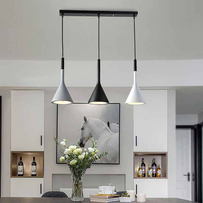 Đèn treo thả trần cao cấp trang trí bàn ăn cao cấp VERSION 3 bóng ngang 3 bóng ngang cao cấp kèm bóng LED chuyên dụng