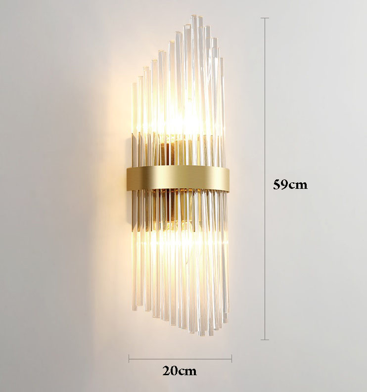 Đèn tường pha lê là loại đèn được thiết kế rất tinh xảo với sự kết nối hài hoà giữa các thanh pha lê với nhau và sự phản chiếu ánh sáng của đèn led