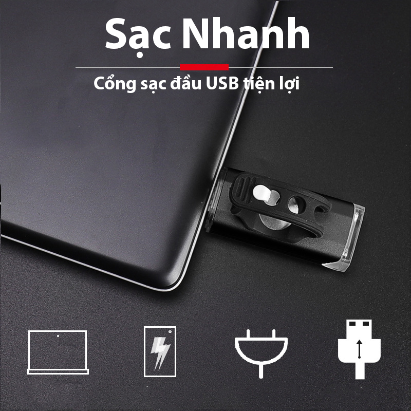THIẾT KẾ SẢN PHẨM ĐÈN XE ĐẠP: - Không thấm nước, bảo vệ khỏi mưa gió, sương mù. - Sạc nhanh USB, sạc tiện lợi, tự động tắt, tránh mưa bụi xâm nhập. -