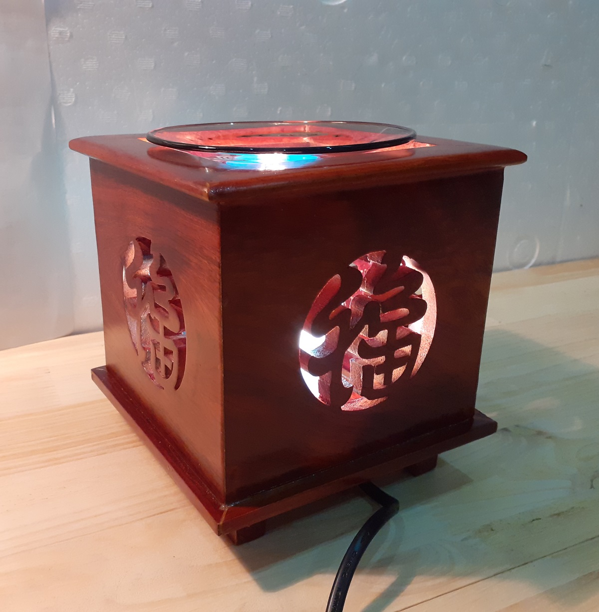 ✨Đèn xông tinh dầu gỗ Hình vuông Chữ Phúc -gỗ hương- Tặng kèm 1 bóng đèn