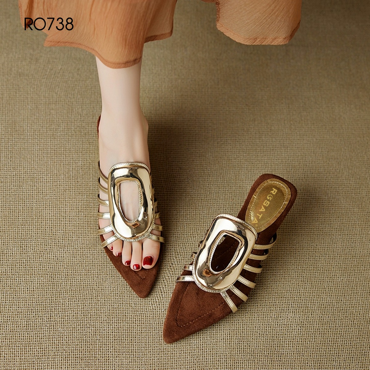 MÔ TẢ SẢN PHẨM: Dép nữ mũi nhọn, gót nhọn ROSATA RO705 - 8p - Vàng, Bạc - BKSTORE Giày được làm từ chất liệu da PU cao cấp, bền và dễ lau vết bẩn