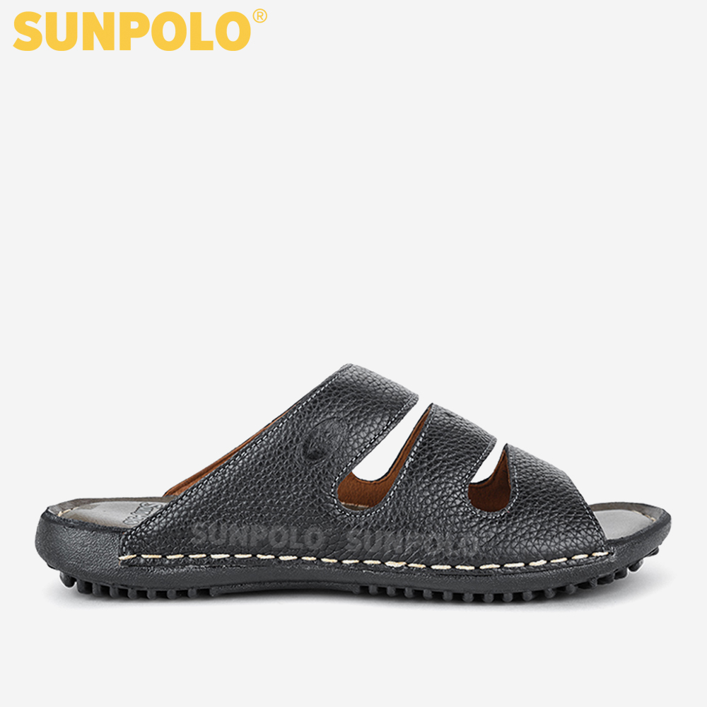✨Dép Nam Quai Ngang Da Bò SUNPOLO SUD19D - Đen