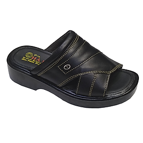 Dép Da Nam  - Lịch Lãm & Thoải Mái Mỗi Ngày - Chất liệu cao cấp: Sử dụng da tổng hợp chất lượng, mềm mại, bền bỉ theo thời gian, mang lại cảm giác êm ái và thoáng khí cho bàn chân. - Thiết kế sang trọng: Tông màu đen lịch lãm, kết hợp với đường chỉ may tinh tế và logo kim loại nổi bật – tôn lên vẻ nam tính, trưởng thành. - Đế chống trượt: Đế EVA siêu nhẹ, độ đàn hồi tốt, kết hợp vân đế tăng độ ma sát – an toàn khi di chuyển trên nhiều bề mặt. - Form ôm chân: Thiết kế bản quai ngang rộng, ôm gọn bàn chân nhưng không gây bí bách, dễ xỏ vào – thích hợp cho người trung niên và người lớn tuổi. - Ứng dụng đa năng: Phù hợp sử dụng trong nhà, đi dạo phố, đến văn phòng hoặc các dịp gặp gỡ thân mật. Lựa chọn tuyệt vời cho quý ông yêu thích sự thoải mái, đơn giản nhưng vẫn giữ được nét tinh tế trong từng bước chân.